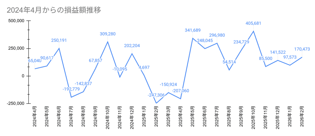 2026年2月のNISAの運用実績:+170,473円、上昇率+6.2%
